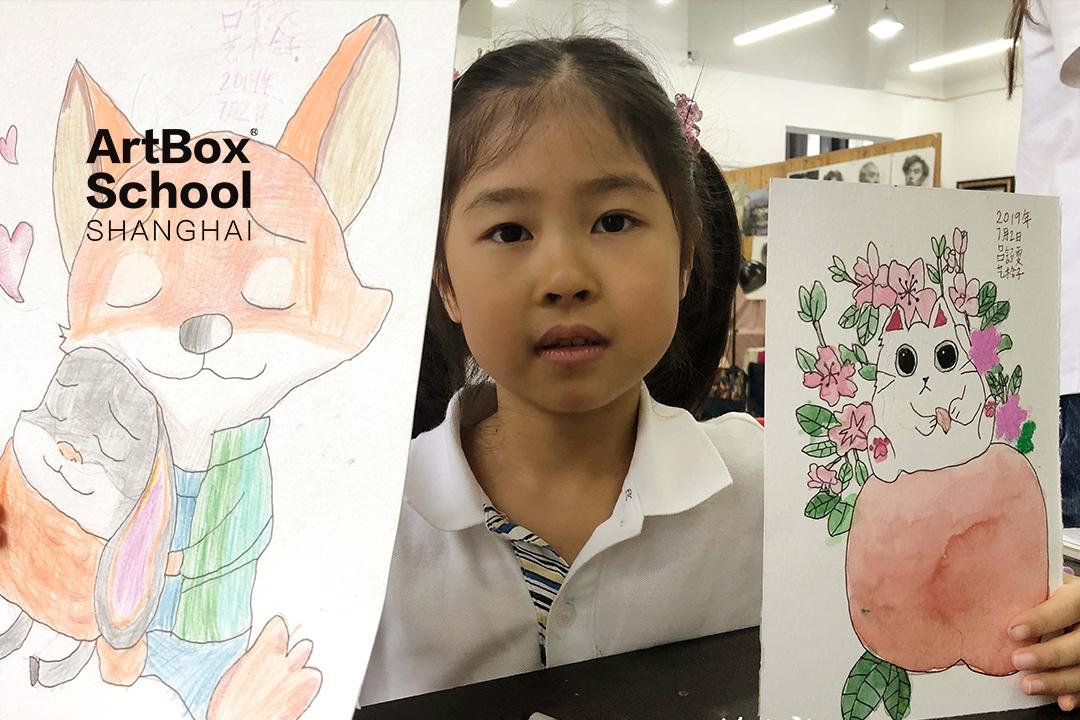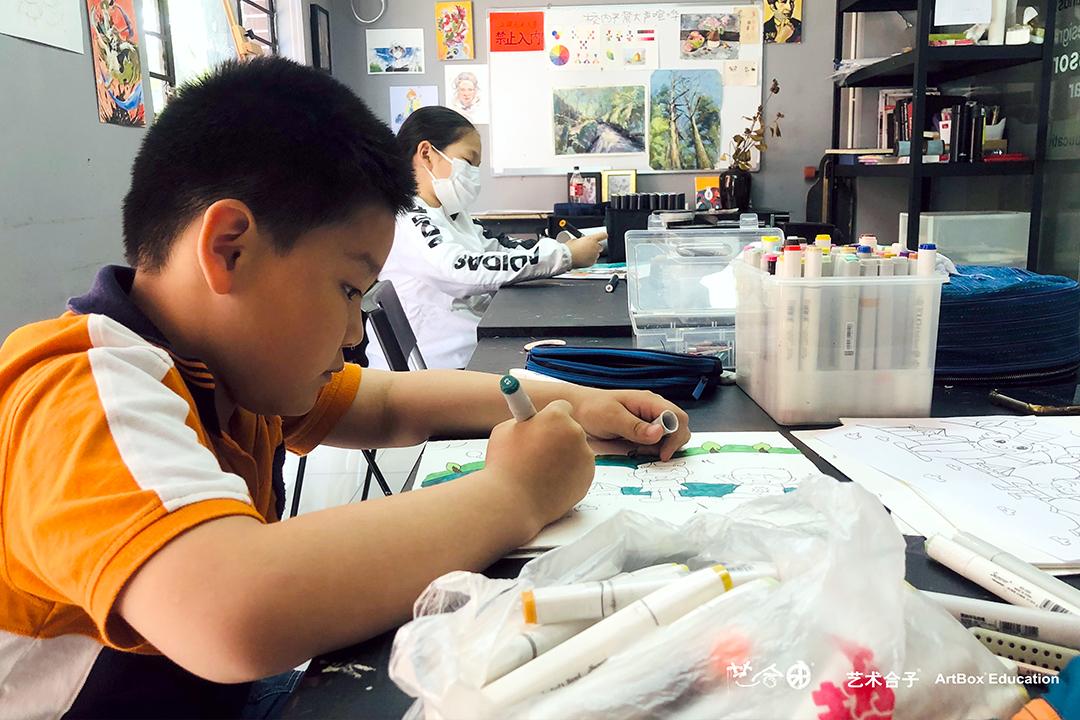 艺术合子暑假班开展了动漫、版画(橡皮章)、水彩、手工、手绘效果图、插画、国画等一系列兴趣类课程,让艺